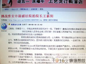 据王院长介绍,在帖子发出之前,他曾为此事接待过曹先生四次,告知他被告房地产公司(银河房地产开发公司)早就人走楼空,老板是福建人,据说人在湖南,始终未能联系上。该公司在淮安没有财产可供执行,法院审委会四月底专门研究该案执行问题。后来他们找来该公司现在淮安的原副总经理来协调此事,就在协调期间,发生了曹先生网上发帖“挑战”的事。对此,王院长表示可以理解曹先生发帖时的心情,毕竟买套房子不容易,而且从发现房屋渗水到其起诉之前已经向各级有关部门反映5年均无果,胜诉后一时未能执行到位,于是将其多年的怨恨都发泄到法院身上,他可以理解。他同时表示,无论该案的执行难度有多大,他们都将穷尽一切手段,依法维护曹先生的合法权益。 记者 朱鼎兆 杨志敏