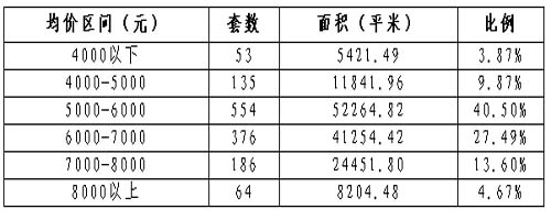 8月份市中心区商品住房成交均价为6298元/平方米。其中:路北区商品住房成交均价为6399元/平方米,路南区商品住房成交均价为5029元/平方米,高新区商品住房成交均价为5950元/平方米。