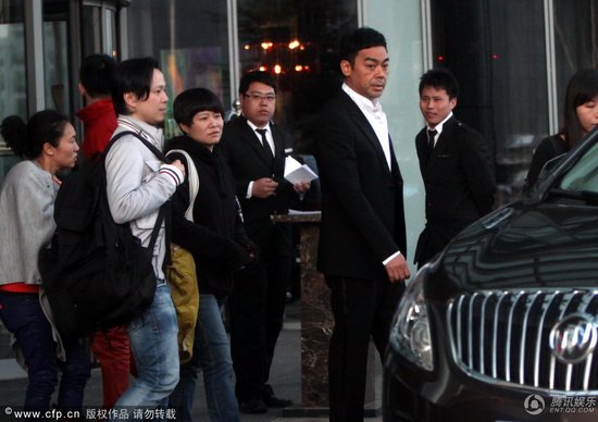 近日,香港男星刘青云携妻子现身北京某酒店。因近日北京大降温,二人都穿的十分厚实,刘青云穿着蓝色帽衫牛仔裤,老婆郭蔼明(微博)粉色羽绒服戴黑帽墨镜,拎着机车包不失温度和风度十分有型。郭蔼明挎着刘青云胳膊一起走进酒店,没多久刘青云换了件做工精良的西服现身,似是要与友会见。刘青云一边走一边伸手抠鼻子和眼睛,毫不避讳众人目光。