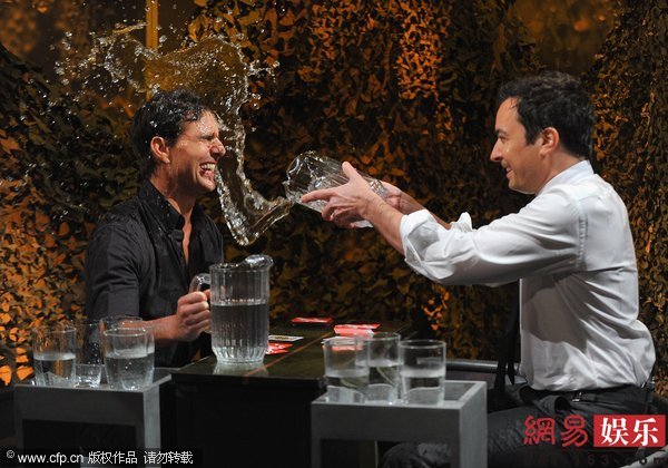 网易娱乐12月20日报道(图文/CFP)阿汤哥美国当地时间12月18日参加《吉米·法伦深夜秀》录制,与主持人互泼水玩游戏惨变“落汤鸡”。