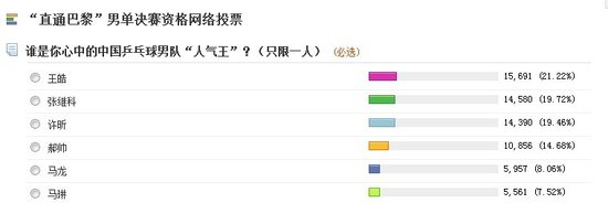 直通巴黎网络投票竞争激烈 王皓反超张继科
