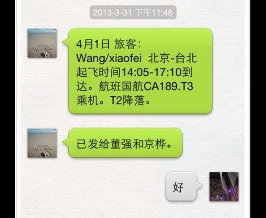 汪小菲在微博秀出航班确认短信
